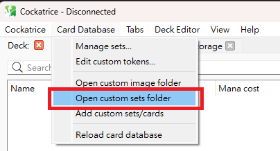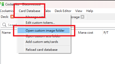 - 在選單列中,前往「Card Database → Open custom image folder」。將「AzurLane Card Images」資料夾放在這裡。