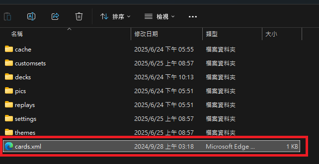 - 接著前往「Card Database → Open custom sets folder」。將「01.AzurLane.xml」檔案放在這裡。