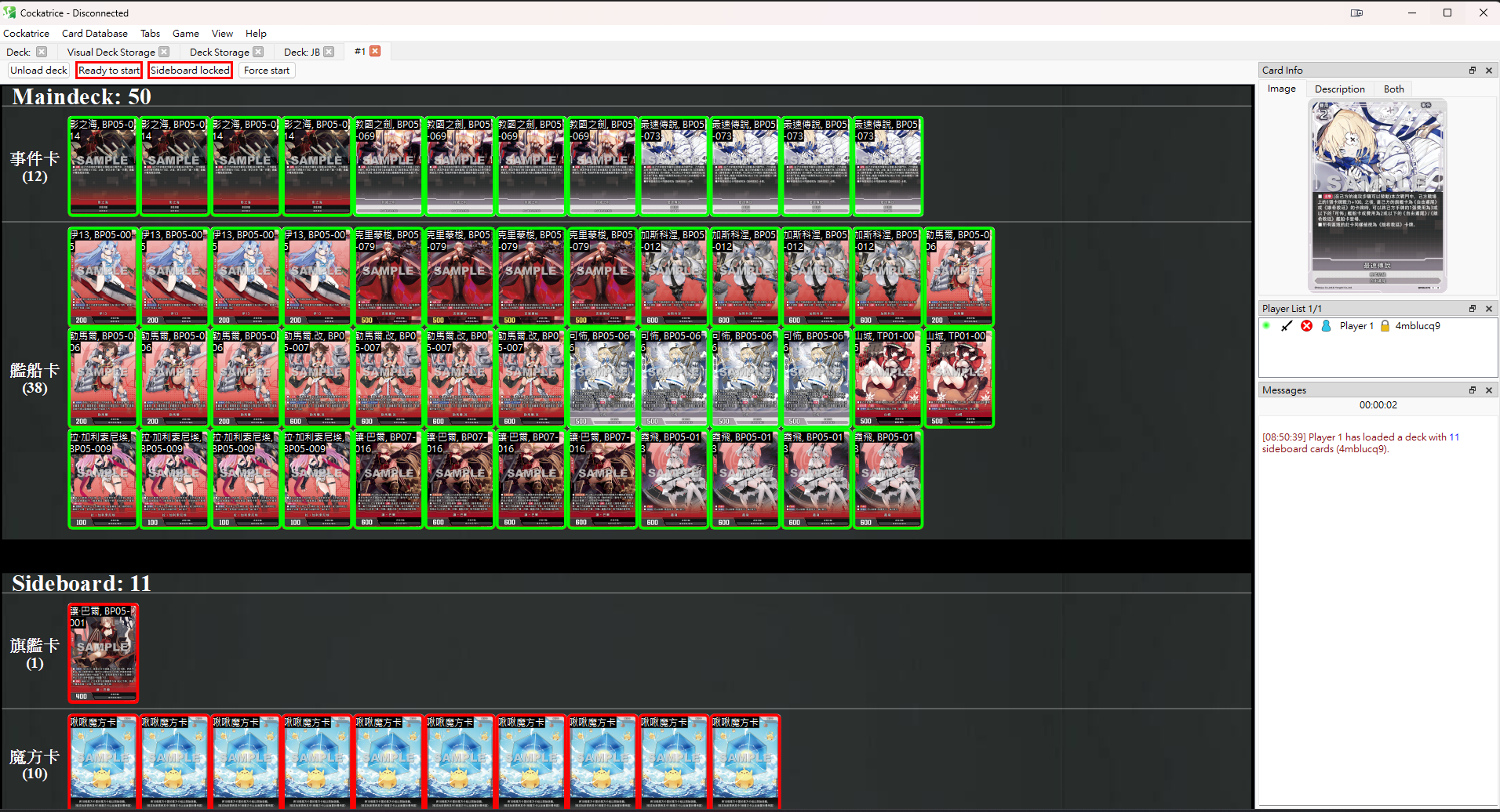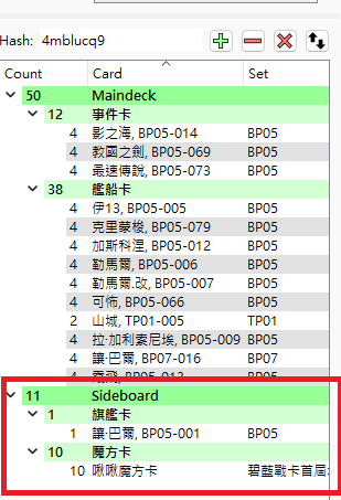 由於程式機能限制,需要將魔方卡以及旗艦卡放入額外牌組