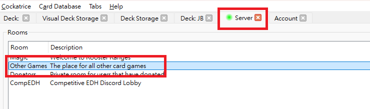 - 登入後,前往 Server 分頁並加入「Other Games」房間。