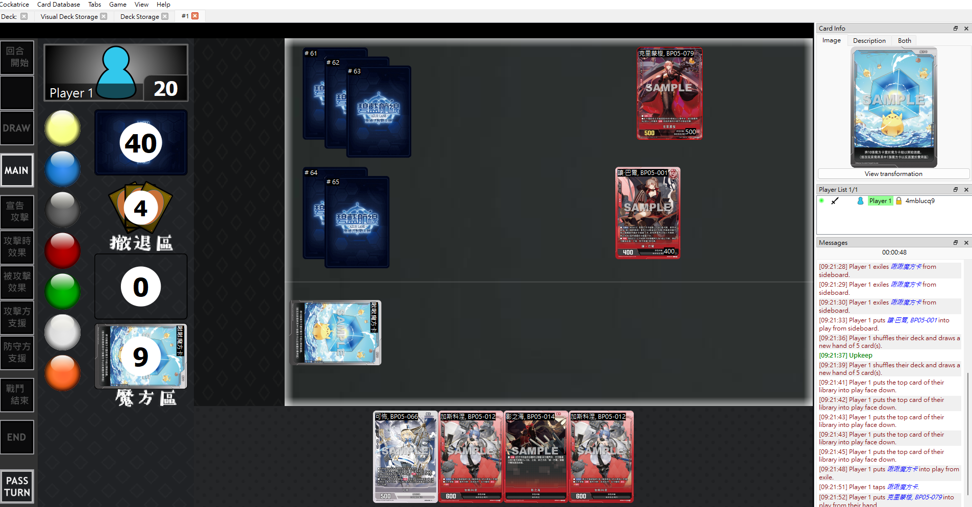 - 查看魔方卡組/旗艦 = Ctrl+F3 或是 右鍵點擊場上 → Sideboard → View Sideboard